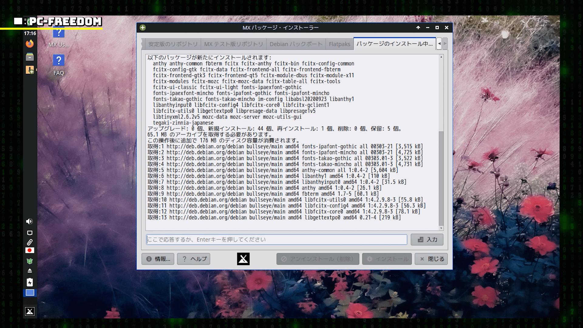 最近ではインストールの際に表示言語を日本語にすると、日本語入力環境まで設定してしまう Linux ディストリビューションも増えてきましたが、MX Linux に関しては未だにその設定を残しています。