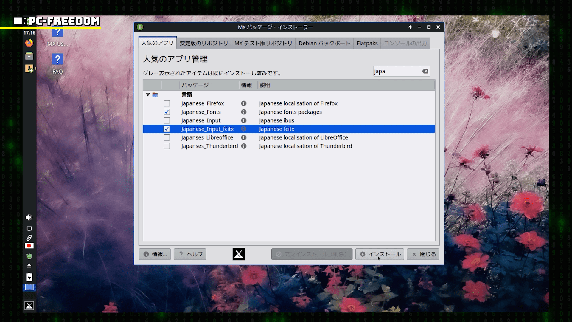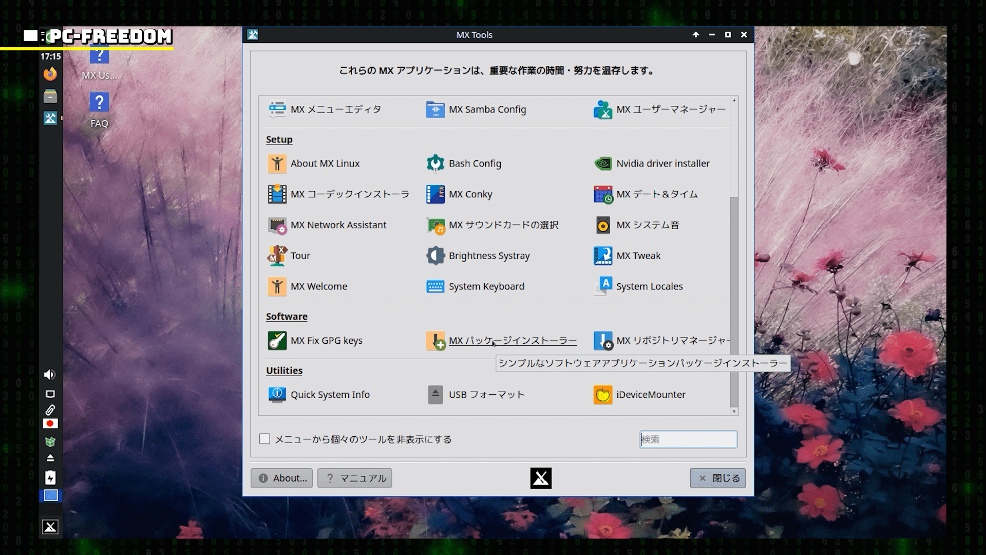MX Tool に含まれるソフトウェア郡は、いずれも「ちょうどよい Linux 感」にあふれるものですが、その中でも特に MX パッケージインストーラーがわかりやすい例だと思います。