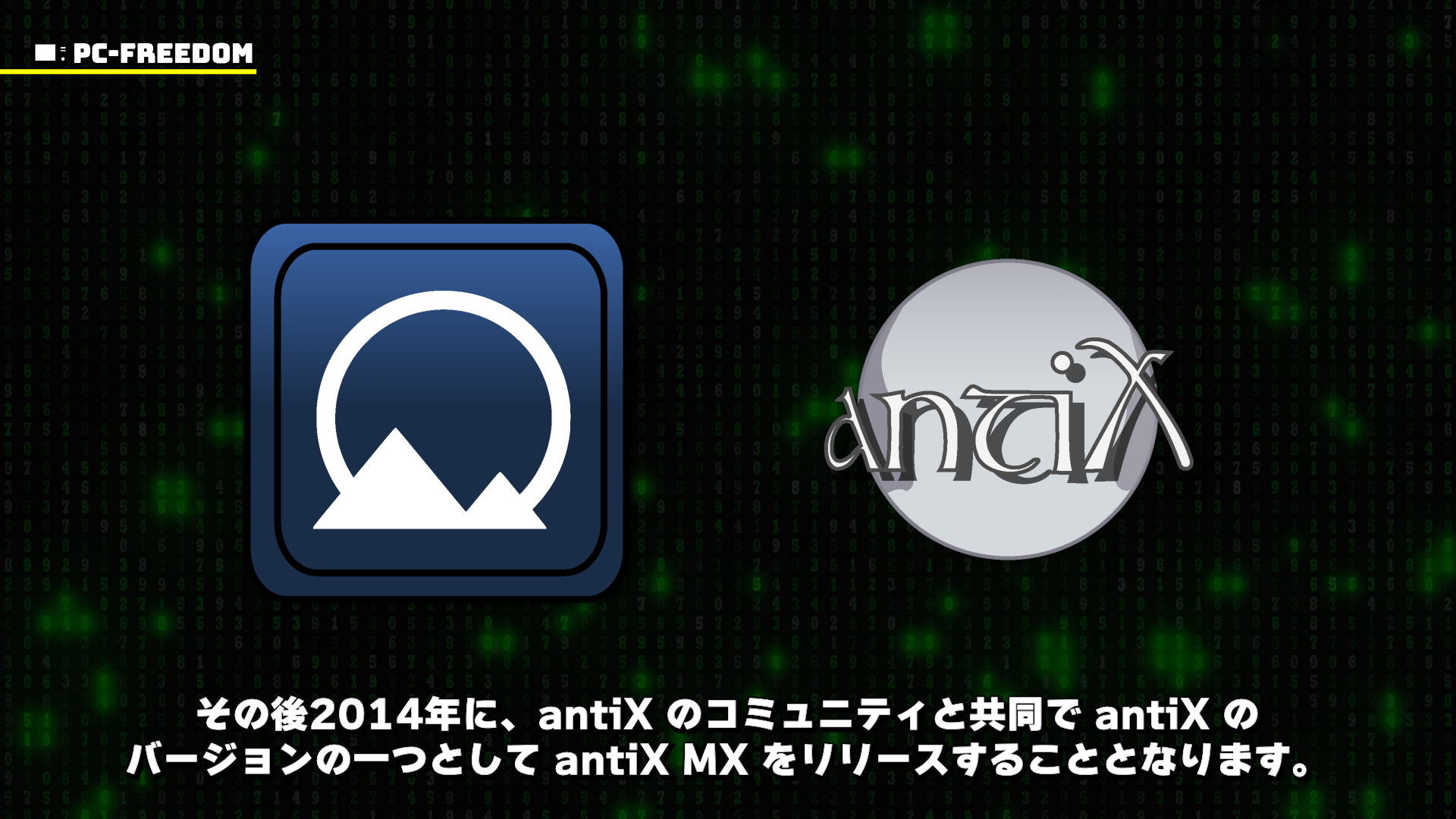 その後2014年に、antiX のコミュニティと共同で antiX のバージョンの一つとして antiX MX をリリースすることとなります。