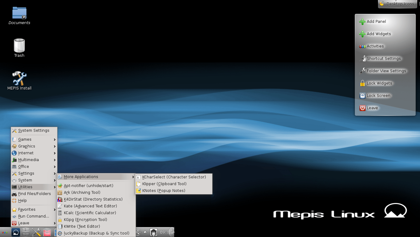 当時の MEPIS が採用していた KDE デスクトップは、比較的コンピュータのパワーが必要になるものでした。