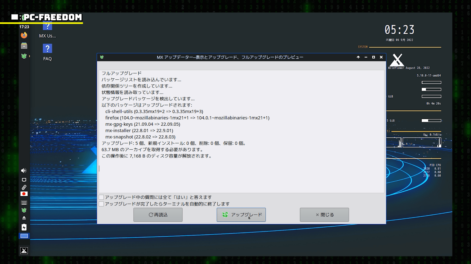 パッケージのアップデートも同様で、基本的に Enter キーを叩く程度の操作でありながら、まるで自分がコマンドで作業したかのように錯覚してしまう環境は、Linux を使う楽しみに繋がるように思えます。