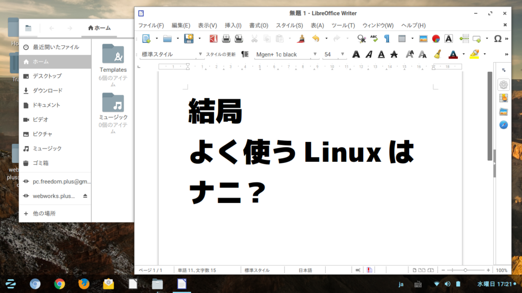 | オススメ度 | ★★★★★ | 個人的に使うには十分すぎるOS。Linux入門にぴったり。 |