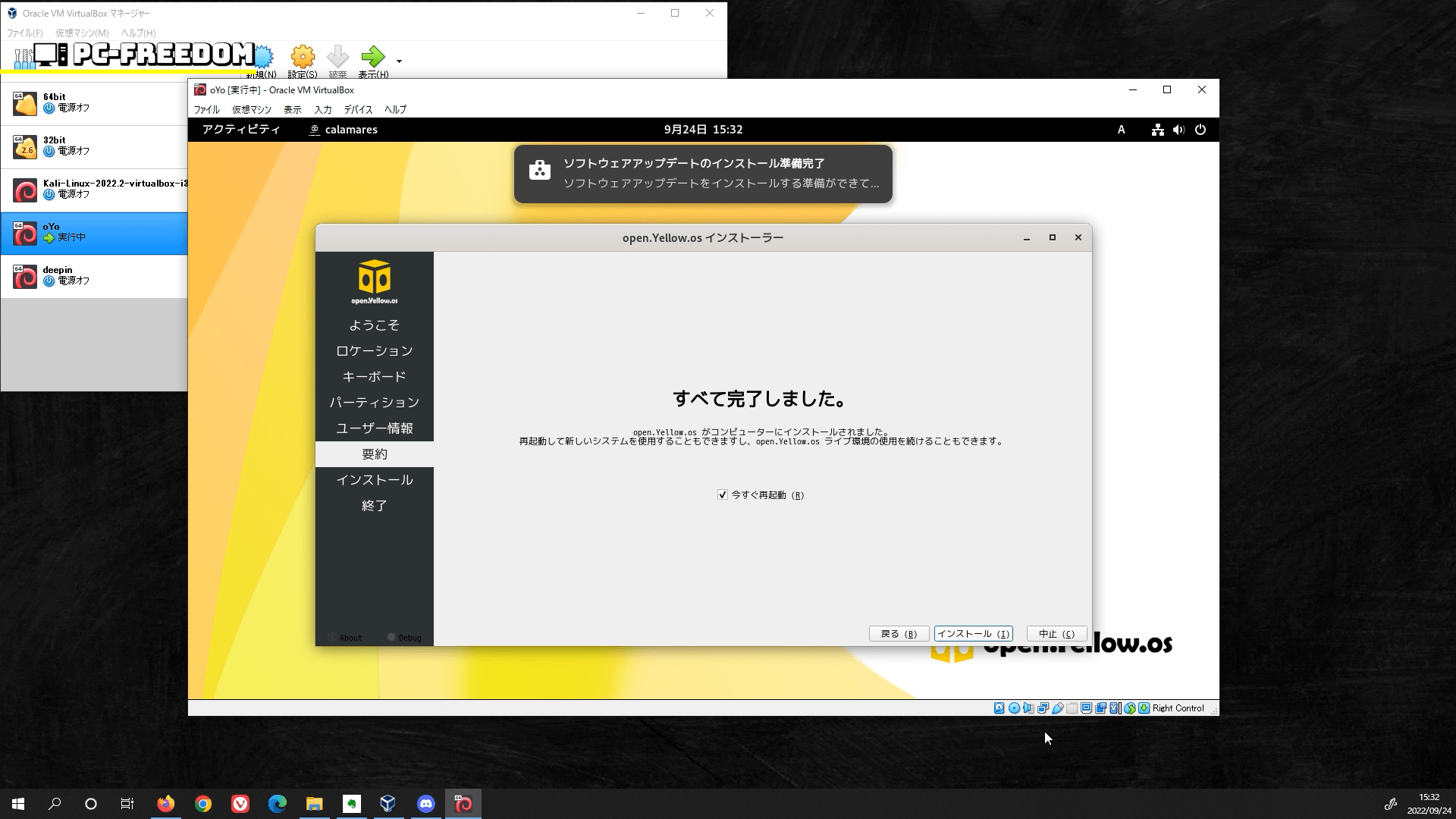 環境により異なりますが5〜10分で突然、インストール完了を知らせる画面に切り替わります。