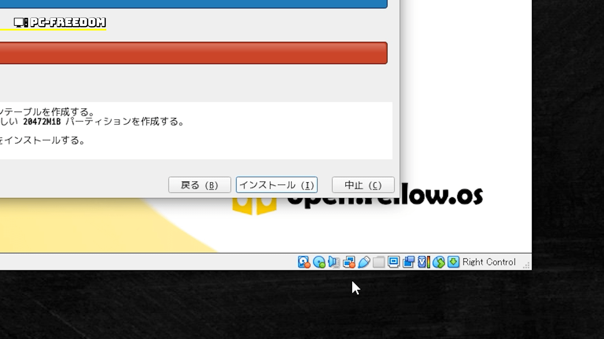 インストール自体に問題は無いものの、フリーズしているため正しくインストールされているのかどうかが不安になるところです。