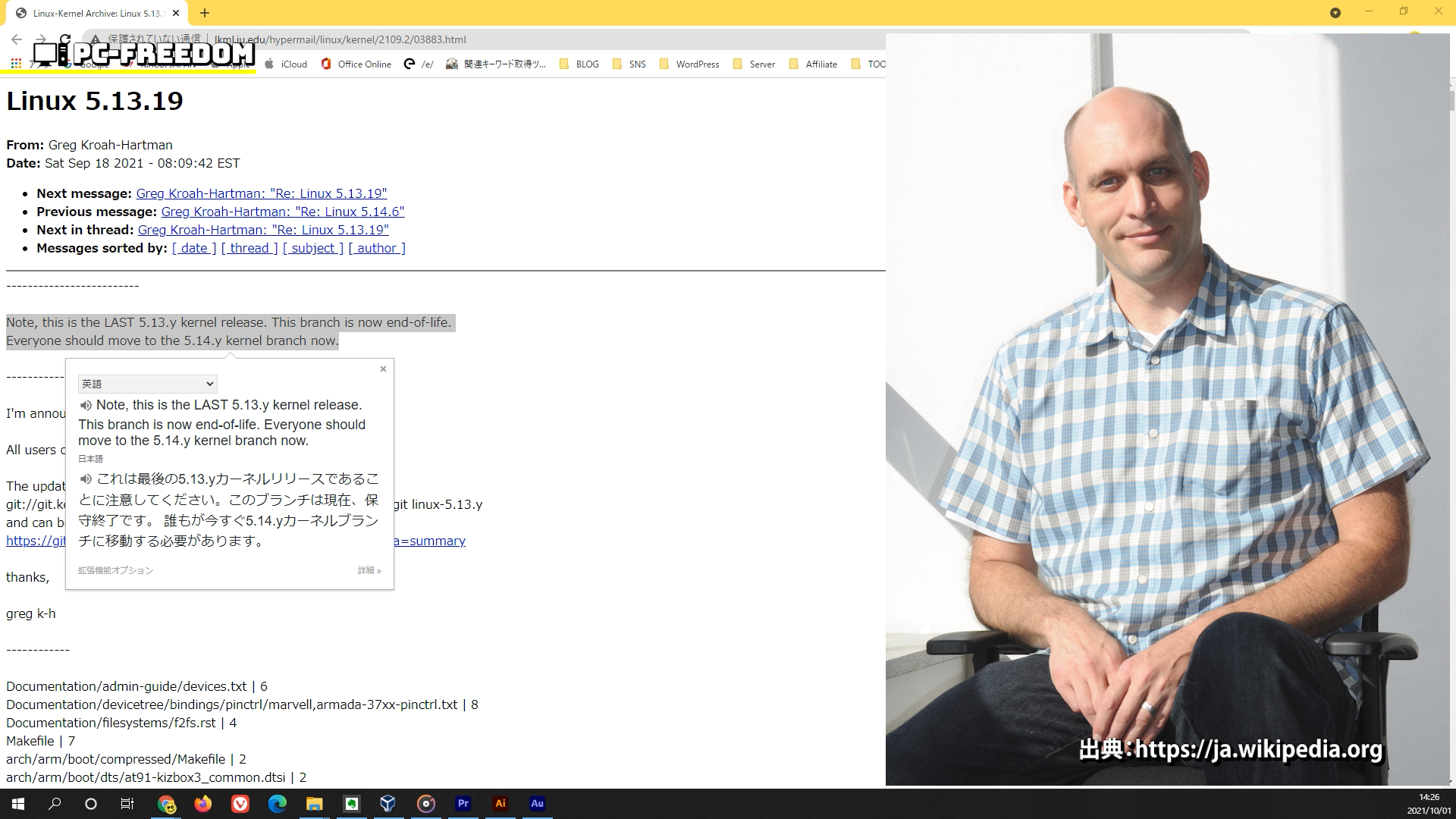 ですが先日(2021年9月28日)、有名な Linux カーネル開発者の Greg Kroah-Hartman(グレッグ・クローア・ハートマン)がLinux カーネル5.13シリーズの最後のメンテナンスアップデートと思われるものを公開しました。