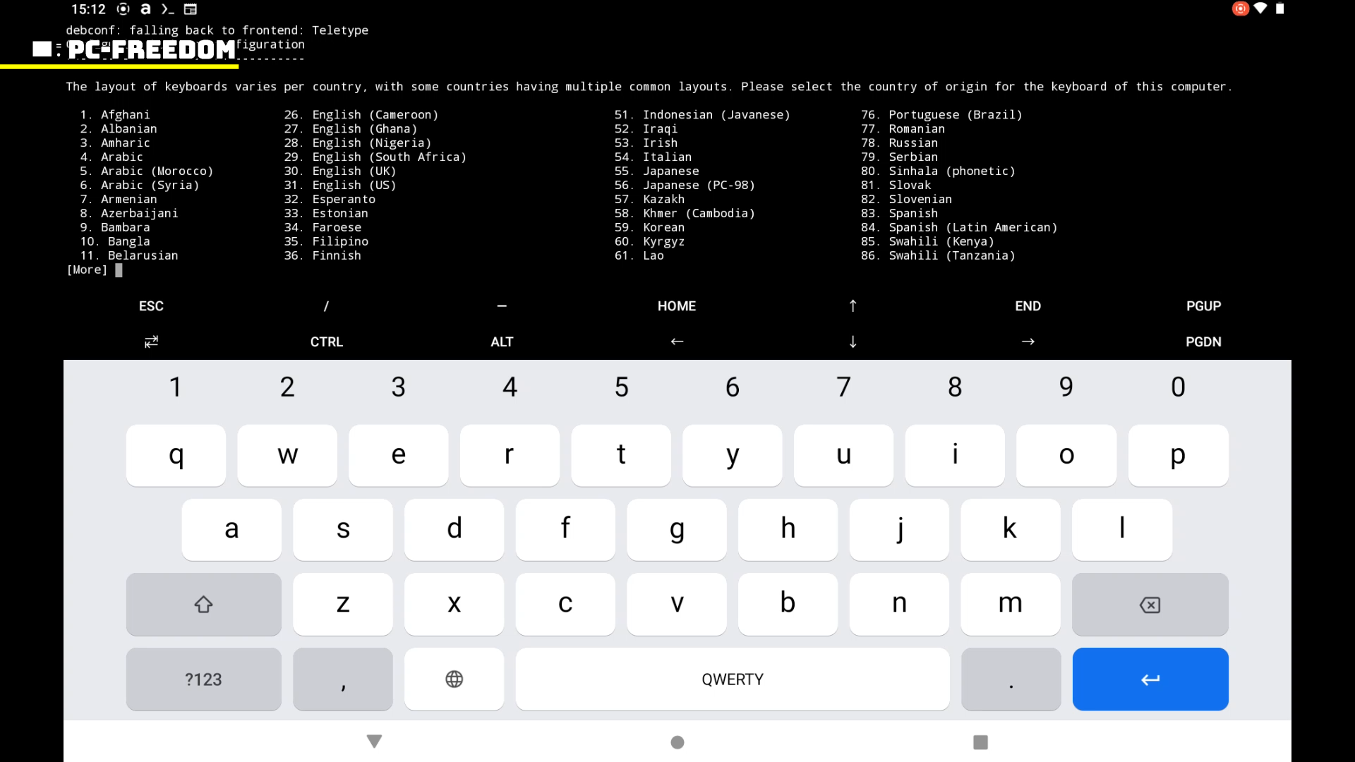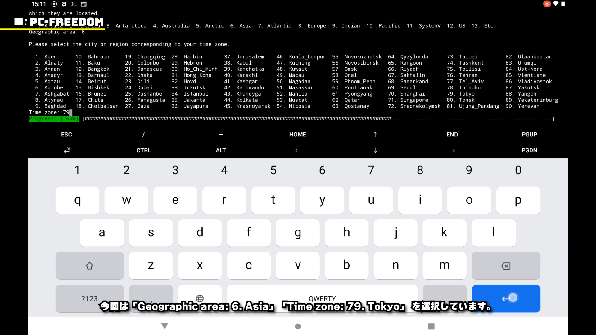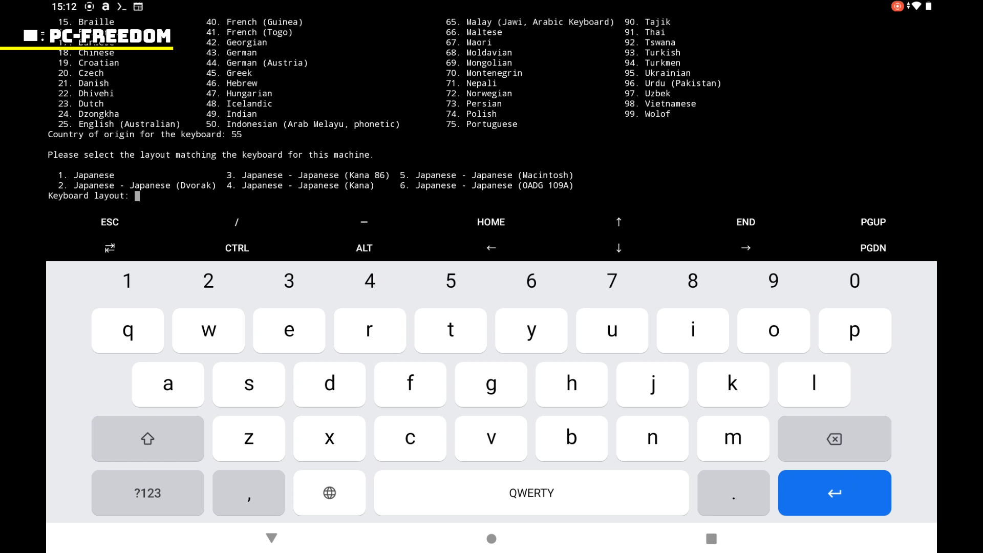 [Enter] を押して進めた後に、希望するキーボード配列の番号を入力してください。