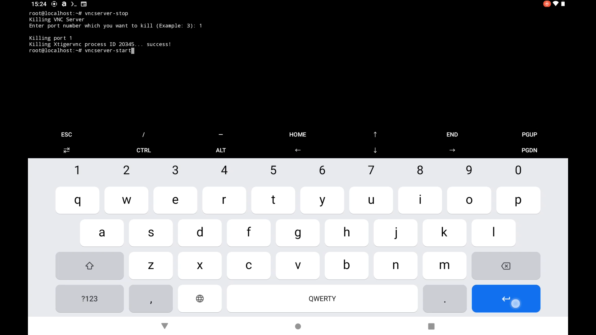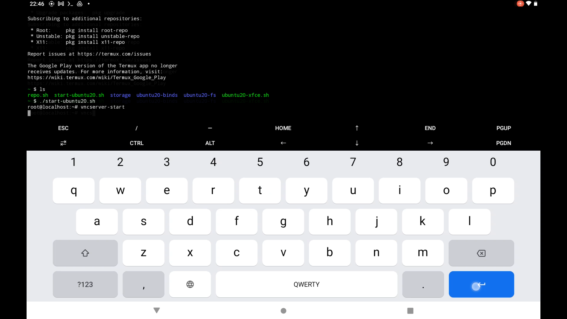 終了させたときの手順とは真逆で Termux 上でディストリビューションを起動させてから、VNC サーバーを起動させます。