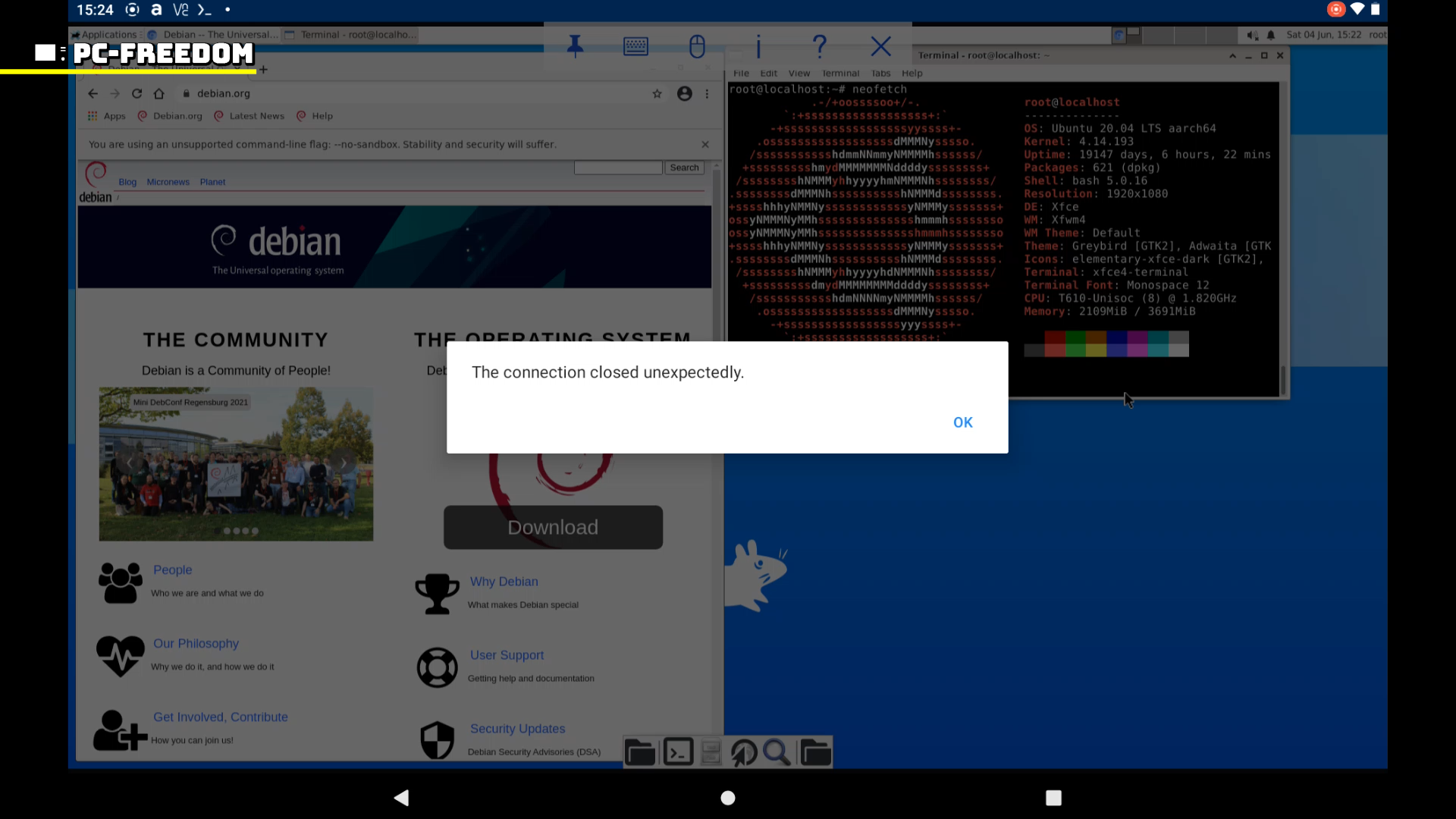 ってことは、おそらくですがこの AndroNix は、Android 端末上に VNC サーバーを構築して、そこに各種 Linux ディストリビューションをインストールするという仕組みのようですね。