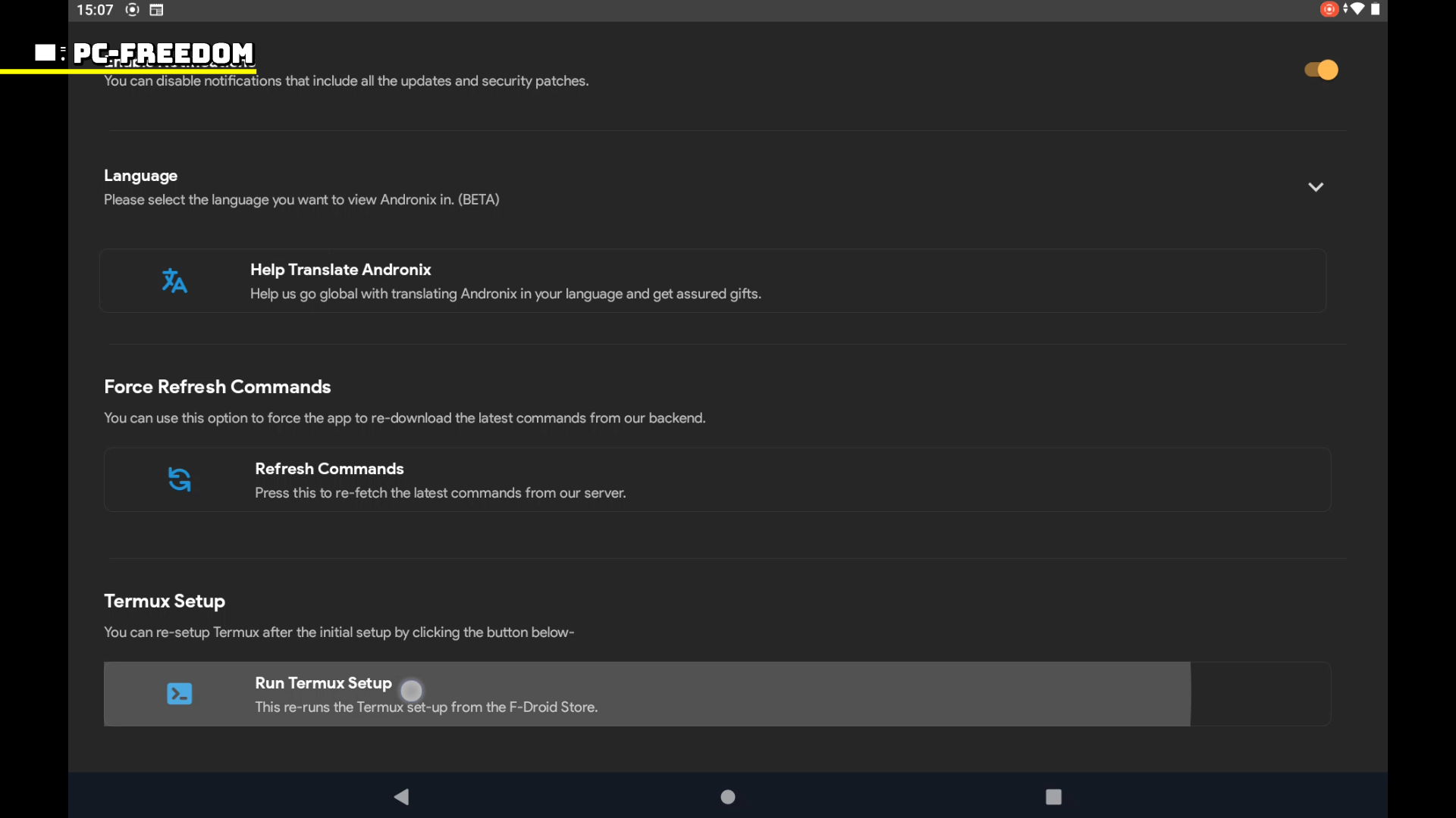 3.一番下までスクロールして「Run Termux Setup」をタップ。