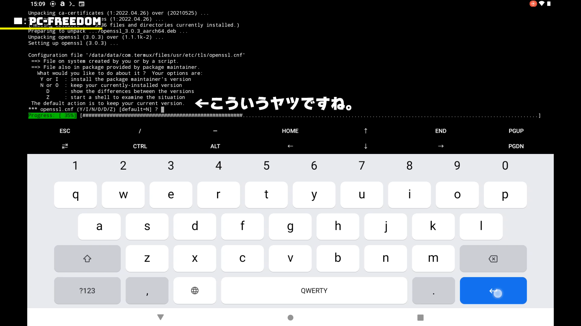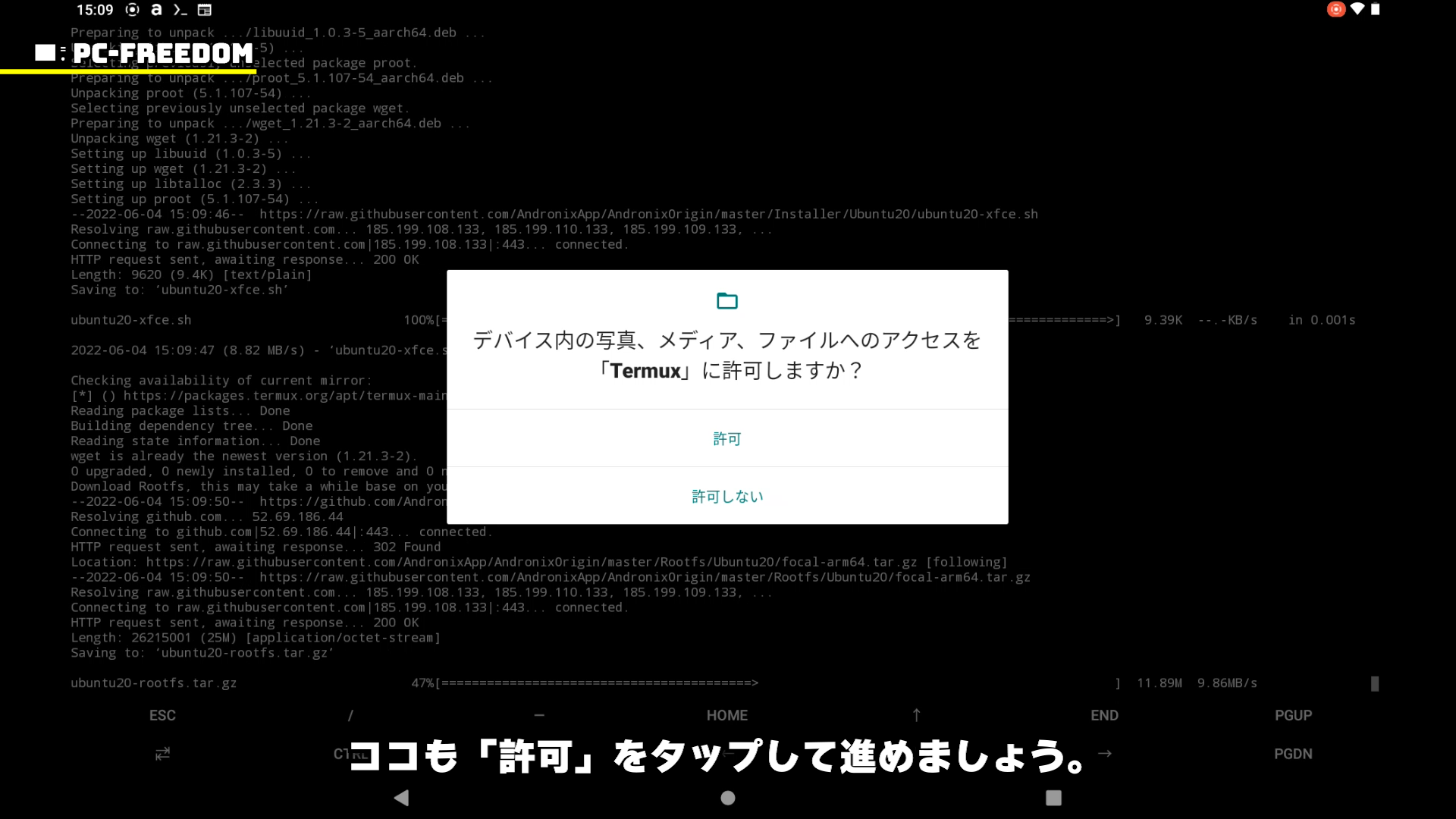何れにせよ、この後の手順がうまくいかなかった場合には、今回紹介した手順をもとに Termux をインストールし直してみてください。