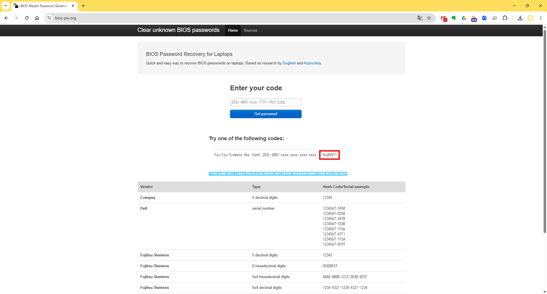 BIOS ロックを解除するには、まずロックがかかった PC からハッシュコードを取得し、次に別の PC を使ってそのコードからマスターパスワードを生成するという2つのステップが必要です。