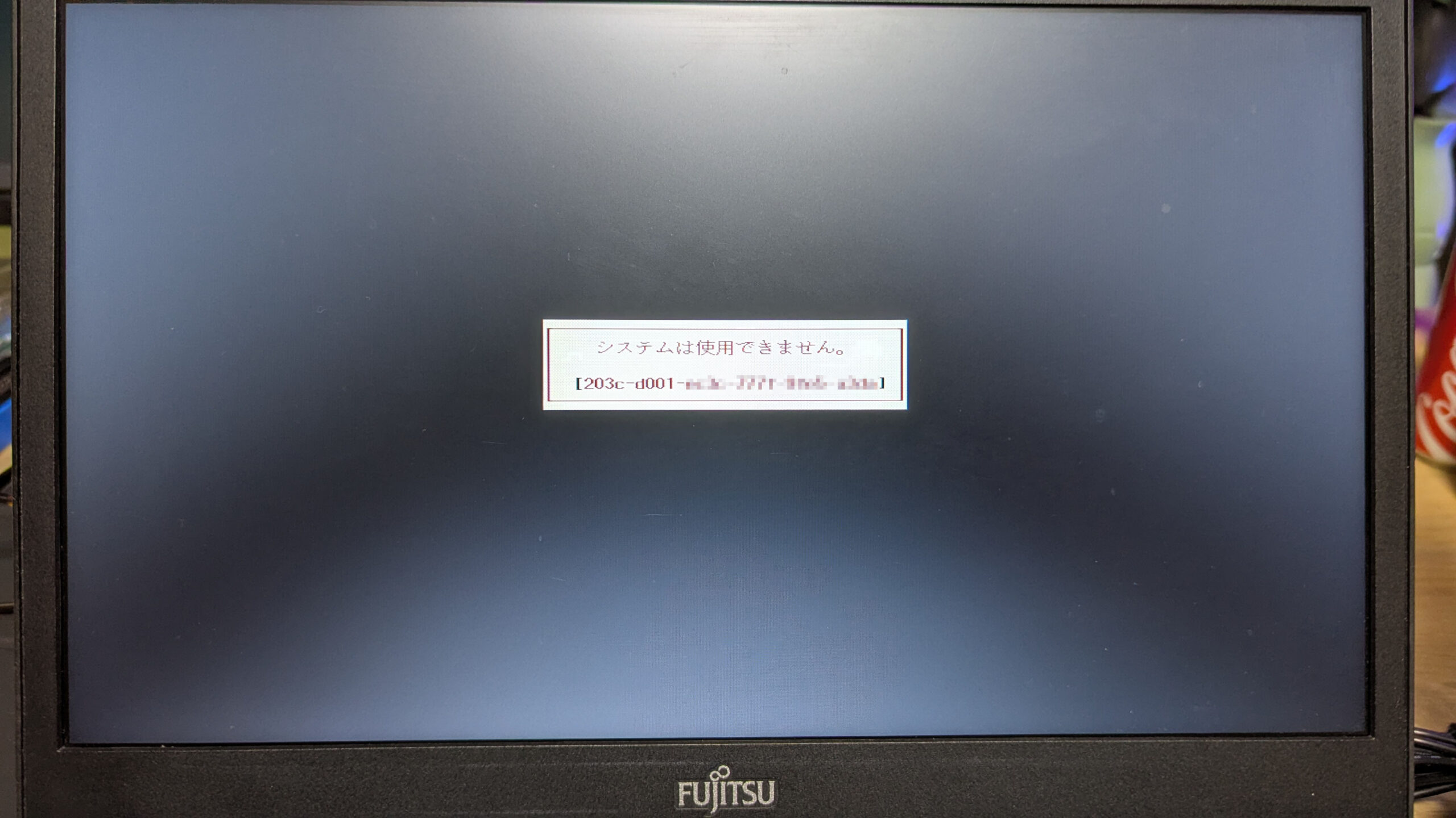 3回目の入力後、「パスワードが正しくありません…」というメッセージに続いて「システムは使用できません。」というメッセージが表示されます。