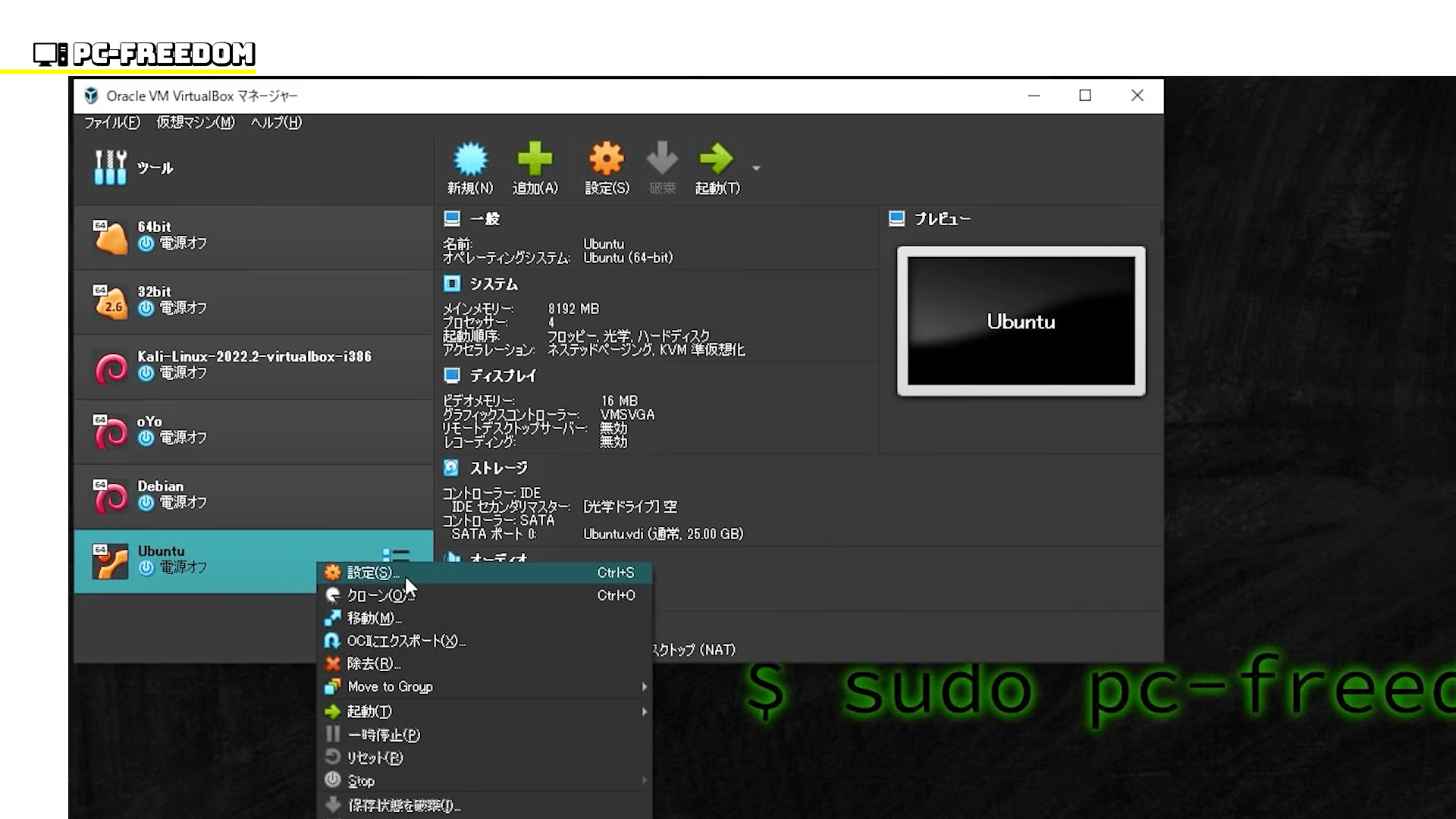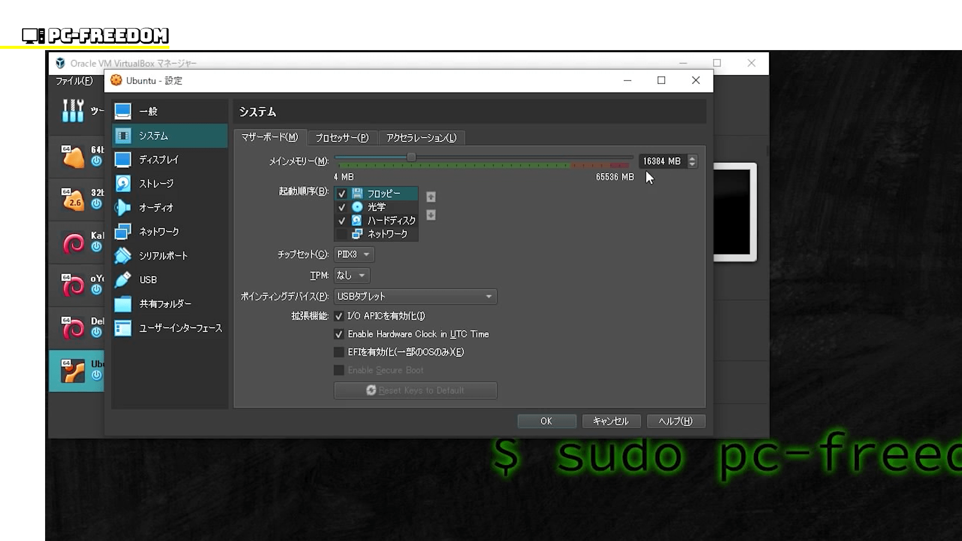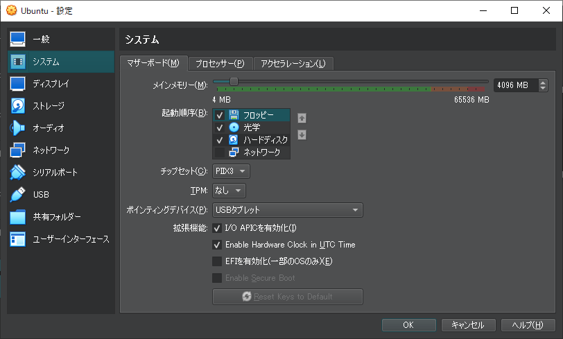 VirtualBox では、作成した仮想マシンの設定を変更することができます。