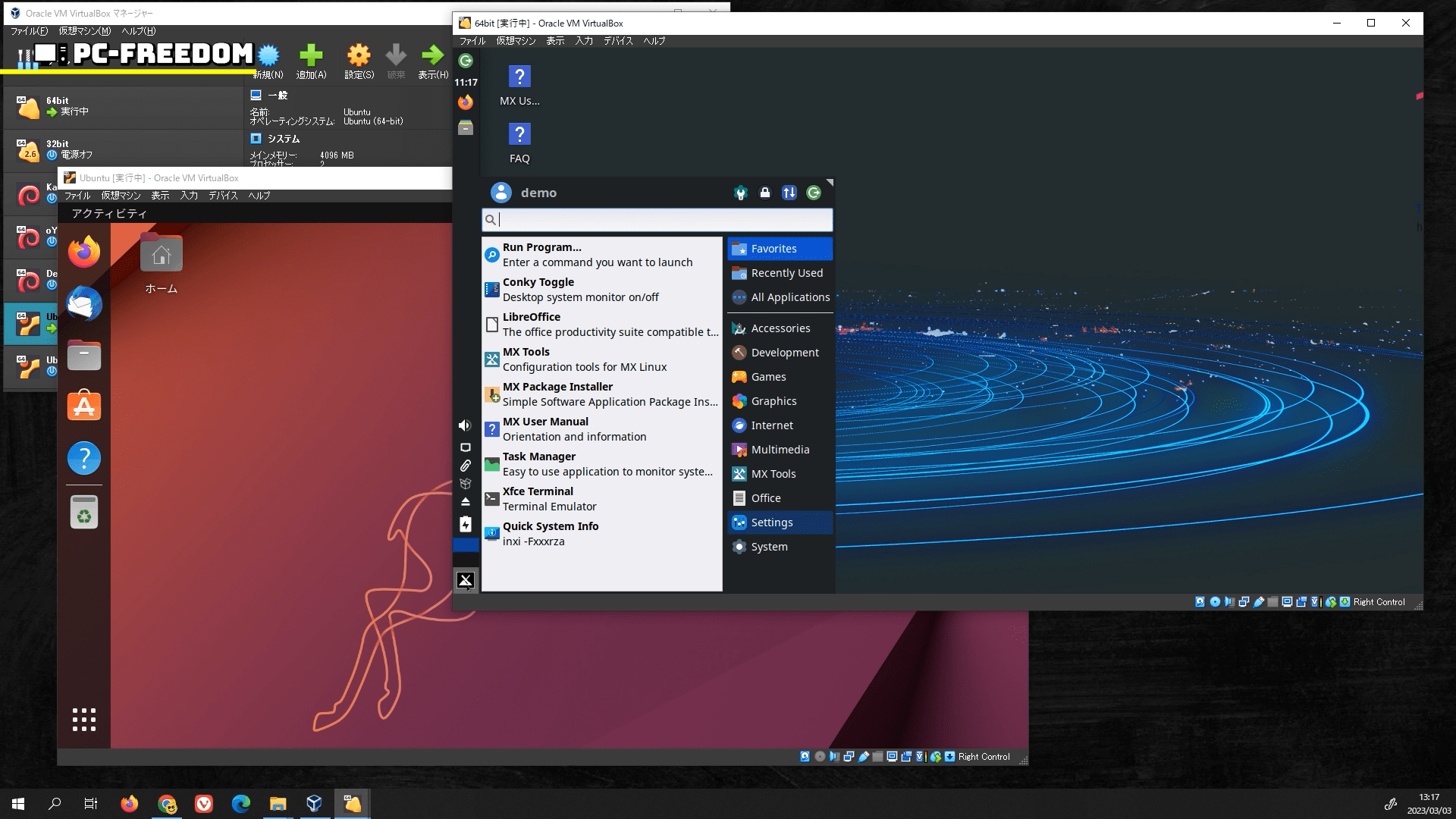 仮想環境を使用すると、1台のパソコン上で Windows と Linux を同時に実行できます。