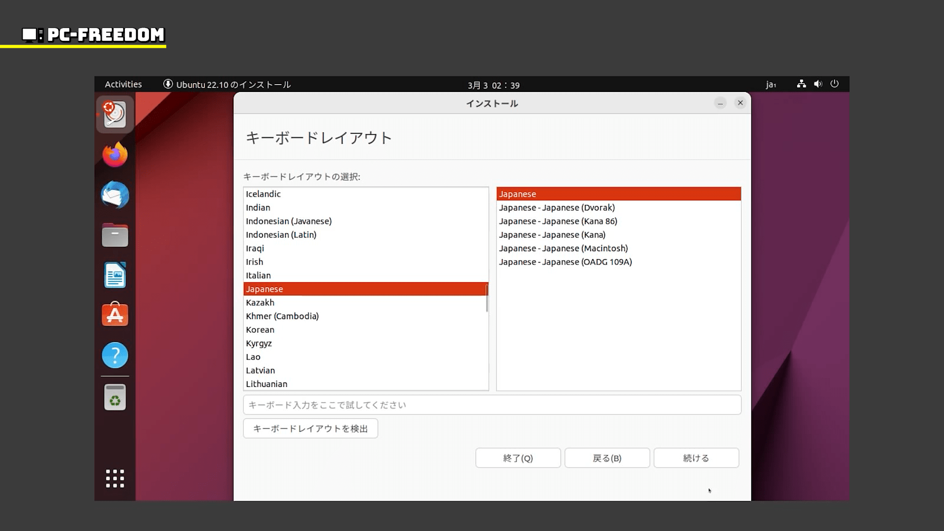- キーボードレイアウトの設定